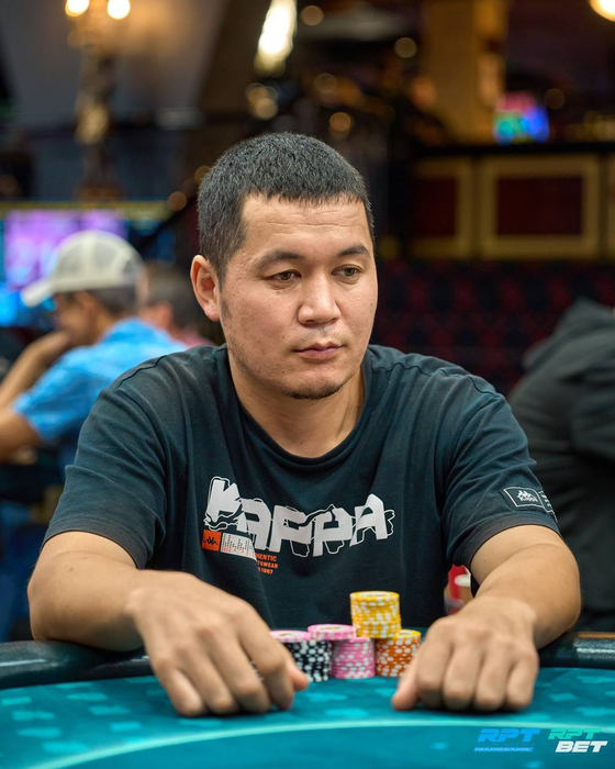 Инсаф Сабиров (970К) с CJ предложил мин-рейз, но на SB на все пешки поехал Жанат Шортанбаев (230К). Колл.