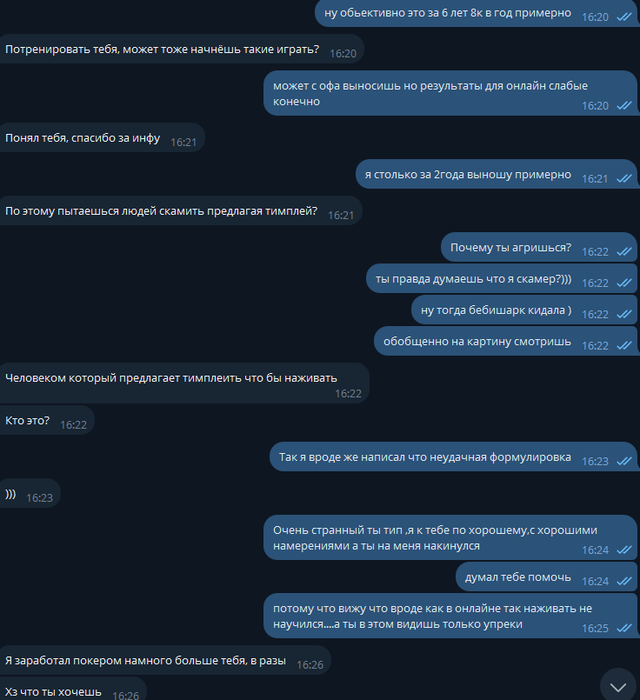 Судя по переписке, чел в адеквате. А проблемы с ЧСВ тут только у тебя. Ну реально, на ровном месте доебался до него. Странно, что он тебя нахуй не послал и не заблочил)