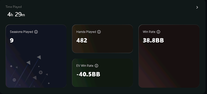 Тут даже на пло2 уровень игры на 3 головы выше чем на стейке, люди зря не дарят, по шестому флешу не вскрывают, до 100бб докупаются. Выиграл чуть денежек в хедзап в омаху6карт и позорно бежал, боясь потерять нажытое. Затем залез в статы, которые койнпокер любезно предоставляет, а мне пишу- -54евбб.....