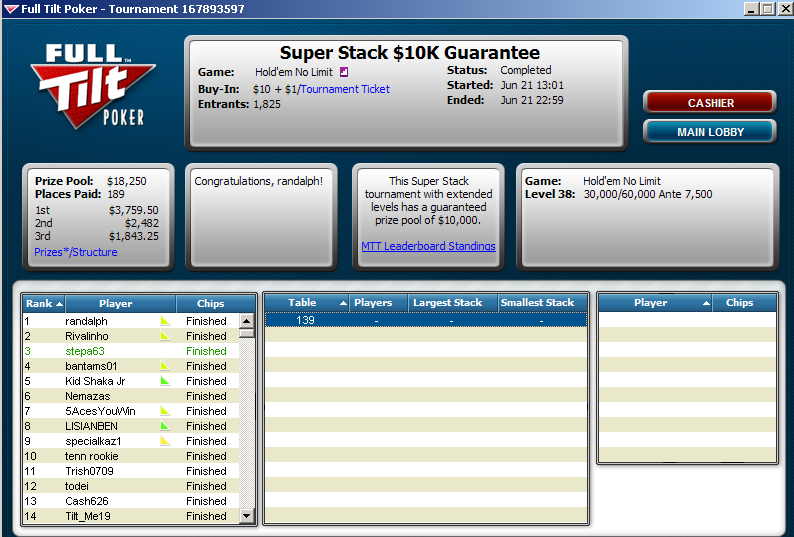 я позавчера в этом же турике вылетел тридцатым через 5,5 часов игры. а вы 10 играли !!!
