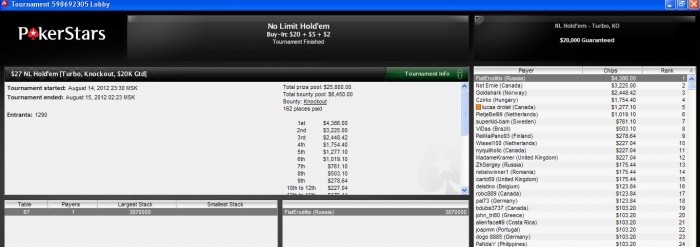 Сейчас нахожусь в чужой стране.Постить буду редко,но метко.Катать тоже.Из двух дней катки результаты такие : в первый день открыли с моим апостолом по три трунира(всё играли вместе и напополам).Результат : трагическое 5ое место в биг 162.На финалке сидели одни крестьяне без образования.