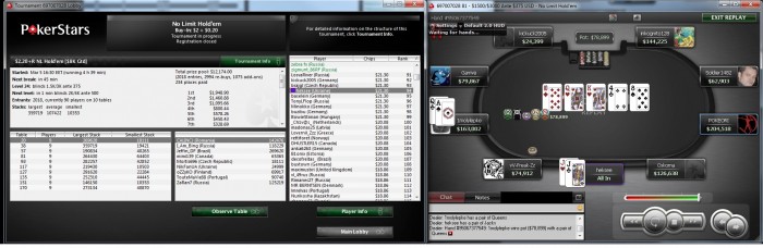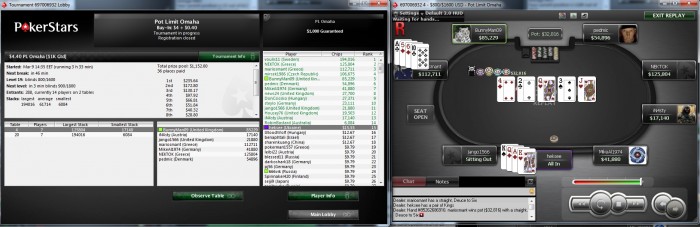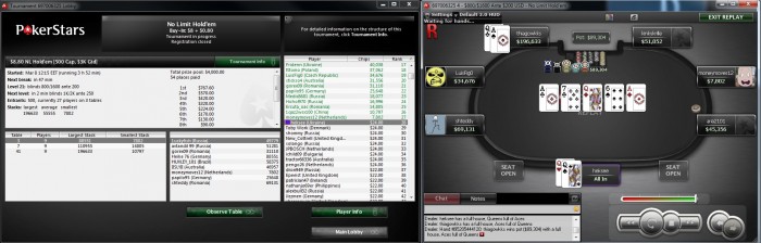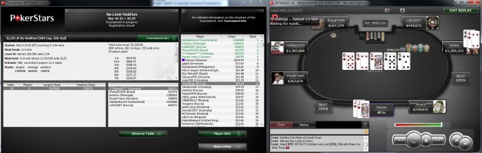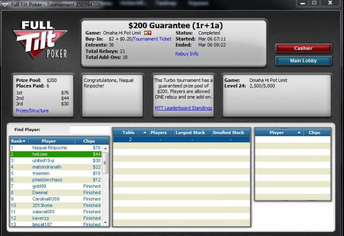 Poker Stars, $8 Buy-in (125/250 blinds, 30 ante) No Limit Hold'em Tournament, 8 Players