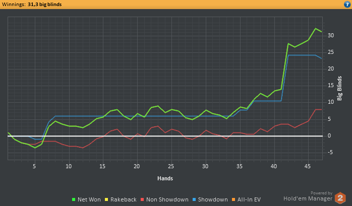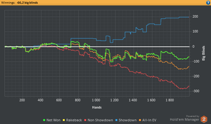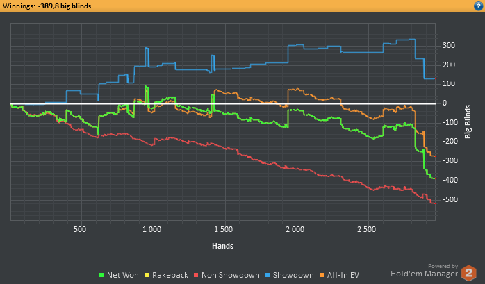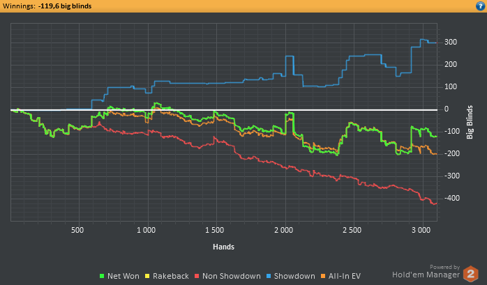 Обидно, что стрик продолжается, ничего не проплачивается достойно, за последние 17к рук - винрейт на ЕП-БУ мизерный просто, на БУ руки типа АА-JJ,АК вообще в минус идут , на поздних сеты, которые ловил не проплатили вообще...