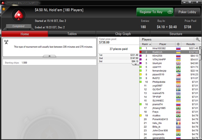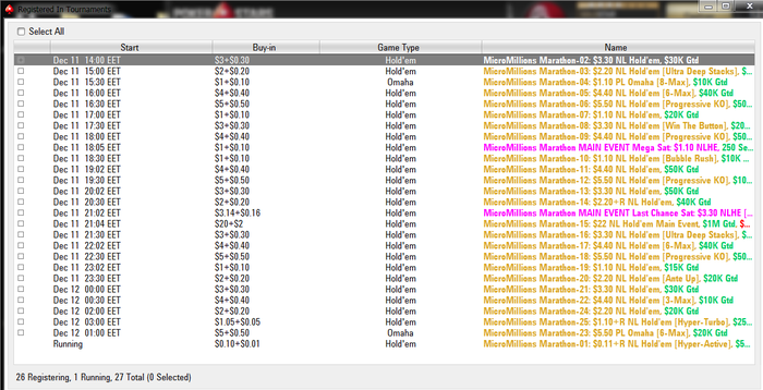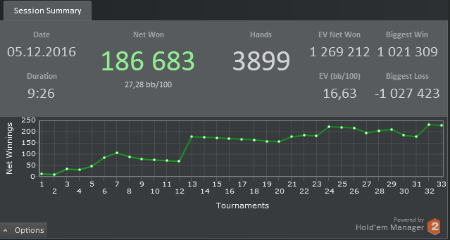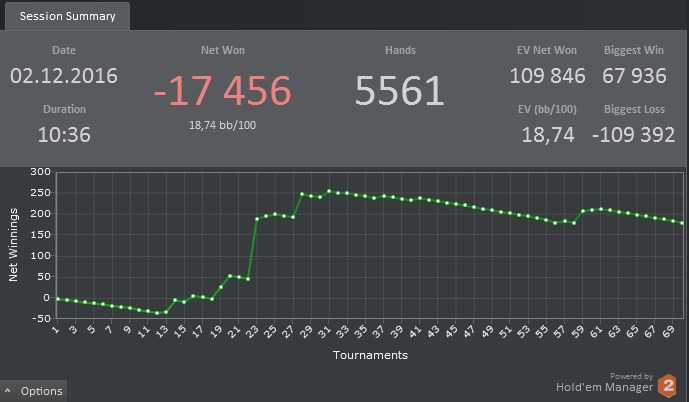 Сегодня играл мтснг и мелкие мттшки, завтра уже можно будет играть немножко дороже, шанс конечно есть, но гриндить нужно много что бы за такое короткое время удалось столько плюснуть. Из мини доездов: