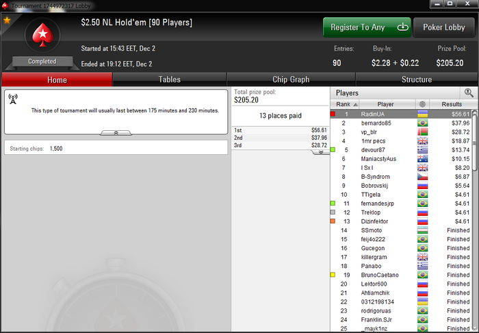 RadinUA @ 1.12.2016 День 1. -16$ Сегодня мягко говоря мне не сложилось, топ 12 turbo 2.2 progressive knok топ 8 turbo 2.2 топ 23 4.4 bubl rush и т.д. с последнего вылетел так: