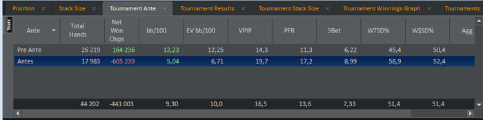 UTG+1: 57.07 BB (VPIP: 52.78, PFR: 25.00, 3Bet Preflop: 18.18, Hands: 37)