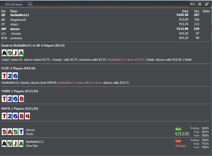 Noname111, думаю уже пора перестать удивляться таким ситуациям) как то раз я выкинул не старший флэш на терне в трибет поте, лимит ПЛО500 зум. Был бы это лимит пониже, то еще бы конечно подумал. Я досмотрел раздачу и перекрестился ) если бы я остался в раздаче, то на ривере собрал бы стрит флэш, первый оп перся с флэшем от короля, которого я бы бил, но меня бы побил второй чел, который изначально имел флэш от туза, а на ривере поймал флэш рояль. Вот вся омаха)
