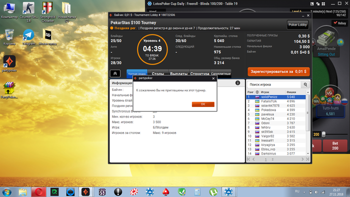 NIKZHIV, Не, в этом турике тоже по привязке рега. Я там не могу играть как и все, кто не привязан от них. Это скрин я прикрепил для руководства ГТ. Что можно лигу не замораживать Пати сначала все фри от аффов убрали, а теперь вот первые ласточки пошли. Можно и нам восстановить турнир. Ну будет не фри а за 1 цент, но главное же движ! Тасуйте и сдавайте короче))