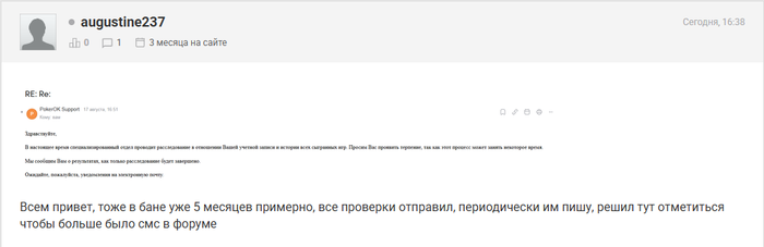 или пусть любой руководитель из Покерка придет объяснится почему его команда без достаточных оснований затягивает проверку, что вызывает негативную реакцию игроков и негативно отражается на репутации бизнеса.