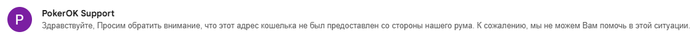 Ещё, у кого-то тут был случай... Написал в сеть ГГ за разъяснениями ситуации с блокировкой, а ему ответили, что в сети не зарегистрировано такого аккаунта. Это наводит на подозрения, что ПокерОК, возможно, что-то мутит с акками.