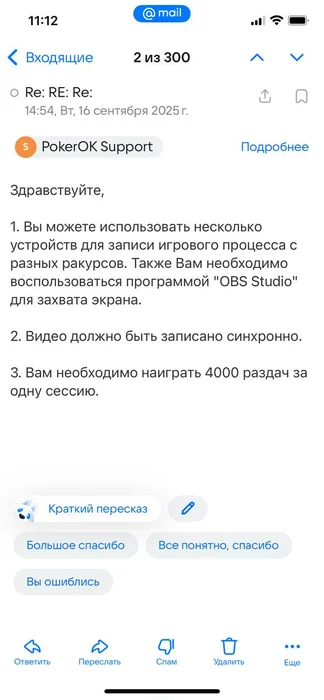 "Также стоит отправить это письмо через форму обратной связи на официальном сайте PokerOK — чтобы оно точно дошло."