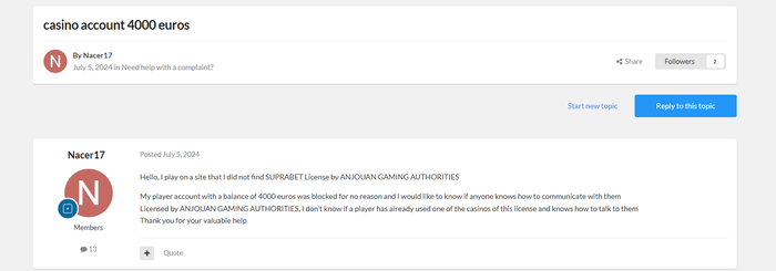 Я неоднократно обращался в поддержку, однако конкретных ответов и действий по разрешению ситуации не получил(а). Также мною была подана жалоба в регулятор "Anjouan Gaming" , но на данный момент ответа или решения по делу не последовало.