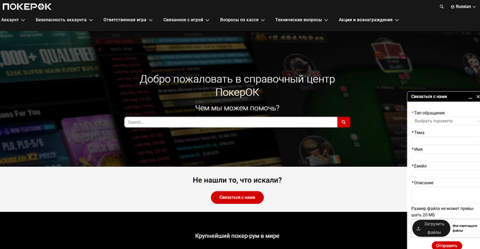 Если баланс не пополнился в течение 30 минут, напишите в саппорт и предоставьте чек (где будет видна сумма, время и получатель). Cвязаться со службой поддержки ПокерОК можно: