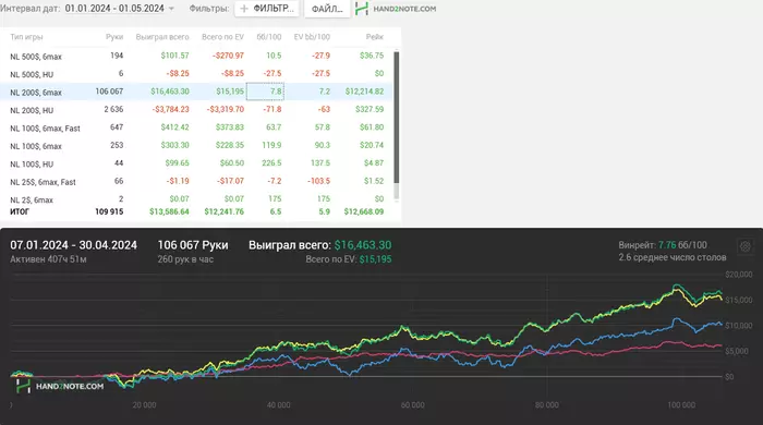 промежуточные результаты года +-20к$ с рейкбеком, где 25-30% игры это тейбл стартинг и регвары, результат считаю вполне себе достойным.