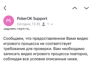 Обработав вашу заявку, ПокерОК передаст информацию платежному провайдеру. В большинстве случаев поиск платежа займет не более нескольких дней, но в редких случаях может затянуться до нескольких недель. Пожалуйста, не отправляйте повторные запросы в саппорт чаще, чем раз в несколько дней, это не ускорит процесс. Спасибо!