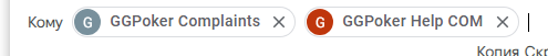(можно просто скопировать отсюда и добавить в поле, если у вас gmail например) GGPoker Complaints <complaints@ggpoker.co.uk>, GGPoker Help COM <help@ggpoker.com>