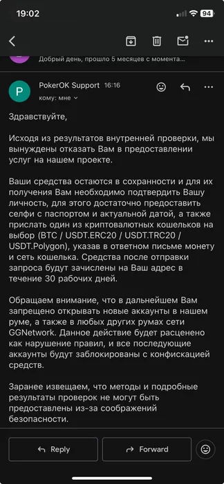 так что попробуйте мб написать им емейл, то есть это не они сами прислали это письмо а в ответ был этот текст