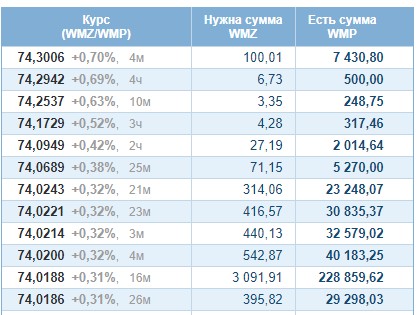 onlyvizard, Не понял вопроса. Разницу в курсах у себя в банке смотри. У меня сейчас полтора рубля, 73.6 в банке и 75.1 в вэбмани. Примерно так и всегда разница 1-3 рубля в пользу вм, в зависимости от времени и банка. Сбер вообще 72.3 покупка