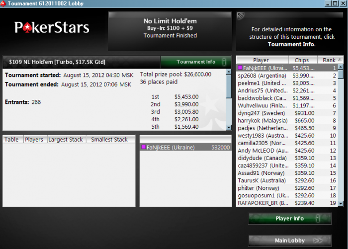 Poker Stars, $100 Buy-in (2,000/4,000 blinds, 500 ante) No Limit Hold'em Tournament, 8 Players Poker Tools Powered By Holdem Manager - The Ultimate Poker Software Suite.