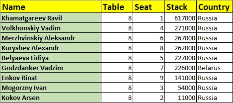 Помимо этого с чеком на 1440 у.е вылетели Ваге Погосян, Андрей Овечкин, Роман Гаджиев, sashaeasy и Максим Секретарев (в чипкаунте он значился чиплидером, но это было ошибкой - он стартовал с куда меньшим стеком).