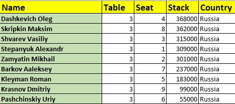 Первые игроки потянулись к кассе за своими призовыми. Вылетели короткие стеки: Арсен Коков, Константин Пучков, Сергей Рихард, Николай Васильев, Сергей Зыбин, Елена Литвинюк. Арман Бежанян, выбросивший вчера на баббле , тоже завершил своё участие в турнире.