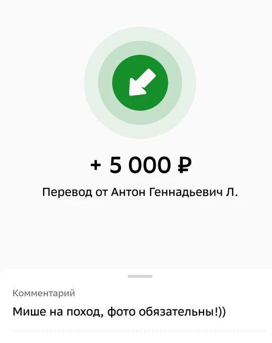 Ещё после поста о Мишином походе мне (нам) прислали донат!!