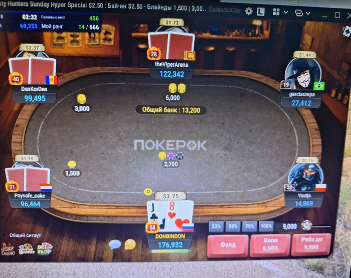 Siniga, я устал от такого...Ну реально не помню, чтобы в покер старз было так же. Набираешь большой стек в турнире любом и тебе подкидывают игроков с большими стеками. Так намного сложнее играть и выигрывать турниры.