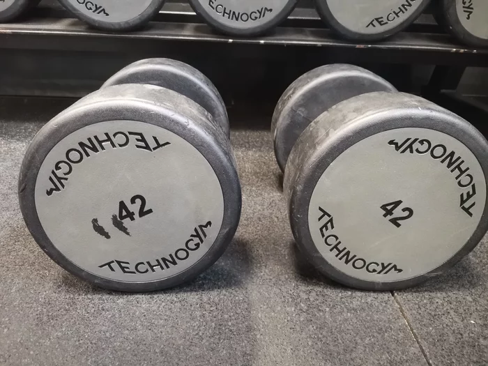 Как мне показалось легко пожал 38 гантельки- 10 раз-хапнул 42 на пробу-но только 7 повторов одолел))