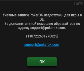 Учетные записи PokerOK недоступны для игры в DE.