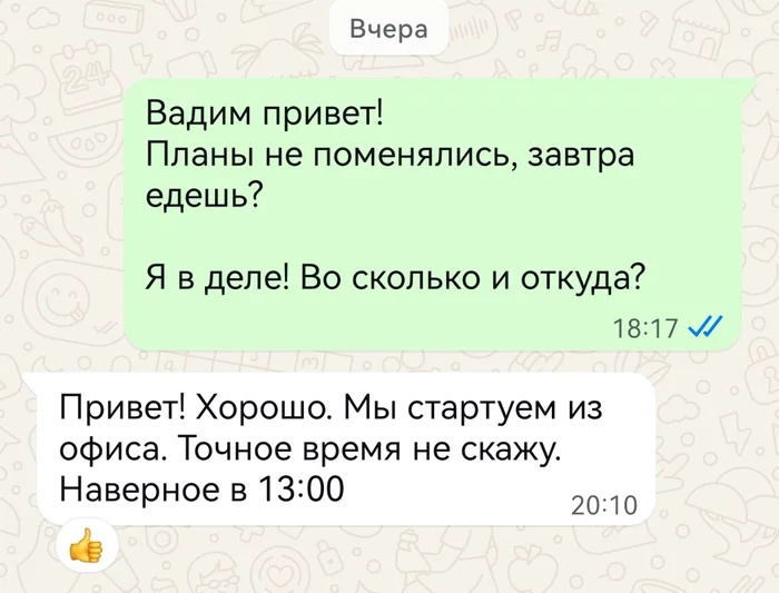 Жду в офисе, не было за 20 лет чтоб выехали вовремя🤣