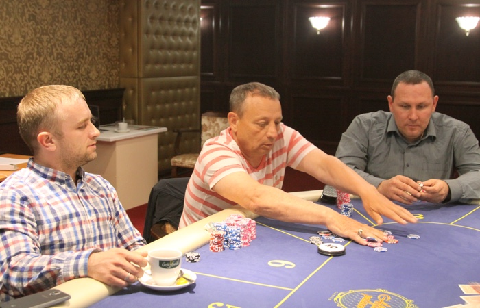 Дробышев почти не принимает участия в раздачах, моментально выбрасывая любую "сомнительную" карту. А вот Исаев с Медведевым постоянно сражаются друг с другом. Причем, если Сергей выигрывает много относительно мелких раздач, то Максим - в основном крупные, избирая в них разные линии поведения.