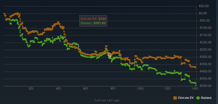 А тут на днях решила вернуться на рег столы, ну и ради интереса запустила 1 столик, а потом еще один и еще один.. Не могу сказать что прям плохо играла, но мне не нравится ощущения в процессе игры что я во многих ситуациях не знаю как играть. Вот эта растерянность отвлекает и от обычных толов тоже. Прилично минусанула за эти пару дней, а потом решила посмотреть рег графики раздельно по лимитам. В обычной, даже с учетом приличного недобора около 0. А тут же просто в пропасть график летит. Поэтому пока воздержусь от игры в 5-карточную.