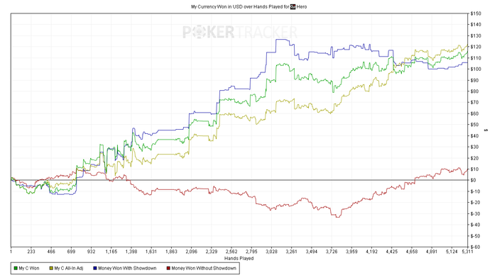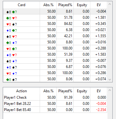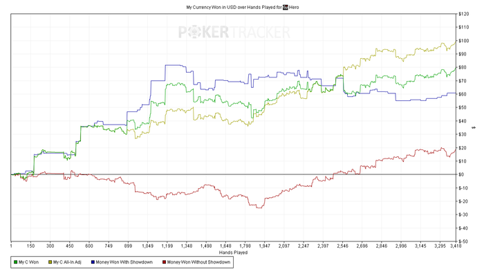 У меня есть предположение, что то, что по программе играется в слабый плюс на практике играется в приличный минус, поскольку оппоненты обычно падают в пассивность и переигрывание рук. В моей игре(nl5 zoom) рыба поддержит финальную ставку с любым тузом и выше.