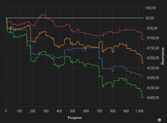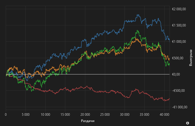 Nicedaybro, в айпокере отчего-то ровными волнами идёт, по синусоиде. Ты всего лишь очередной подтверждающий пример, сейчас у тебя некоторое время в 0 будет игра, потом опять вверх попрёт со страшной силой, не переживай :)
