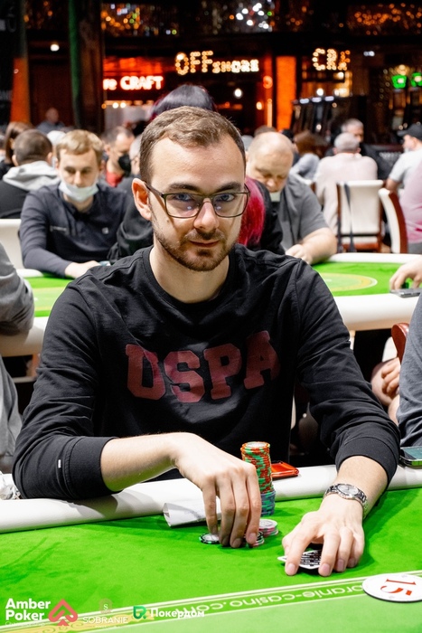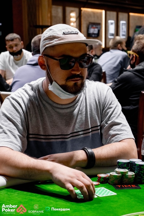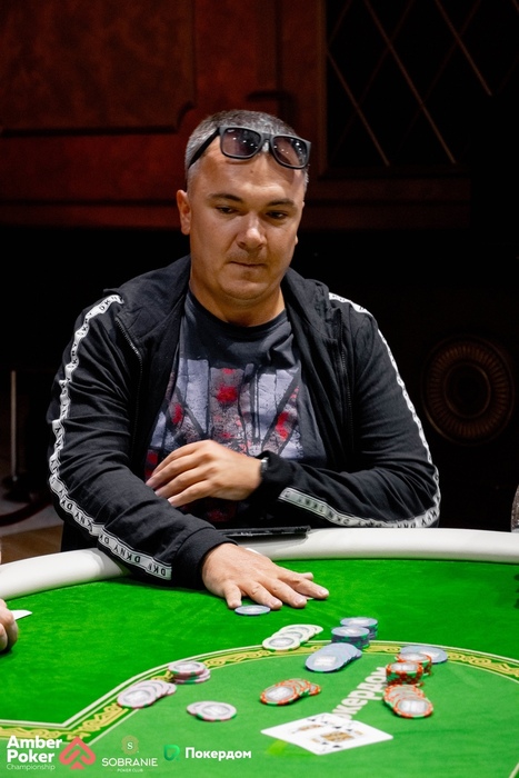 Затем Роман Гаджиев открыл 30,000 с первой позиции, Аркадий Степанов из середины - 80,000, а Гаджиев, потратив полторы минуты, запушил 220,000 на . Степанов - . Доска - . Роман - баббл-бой.
