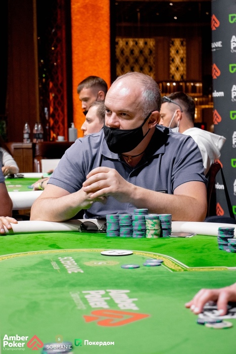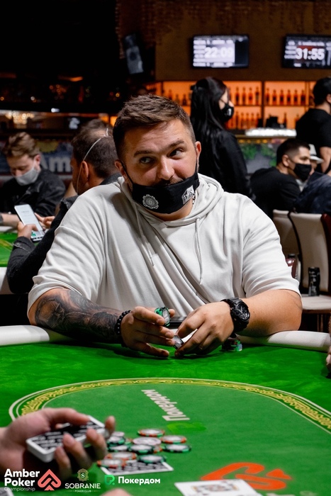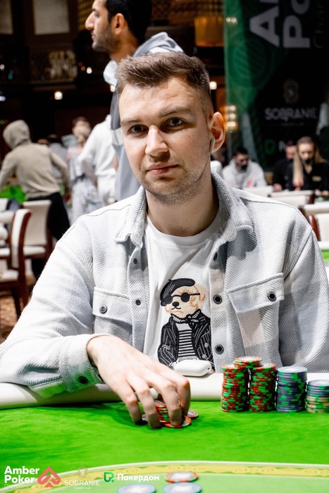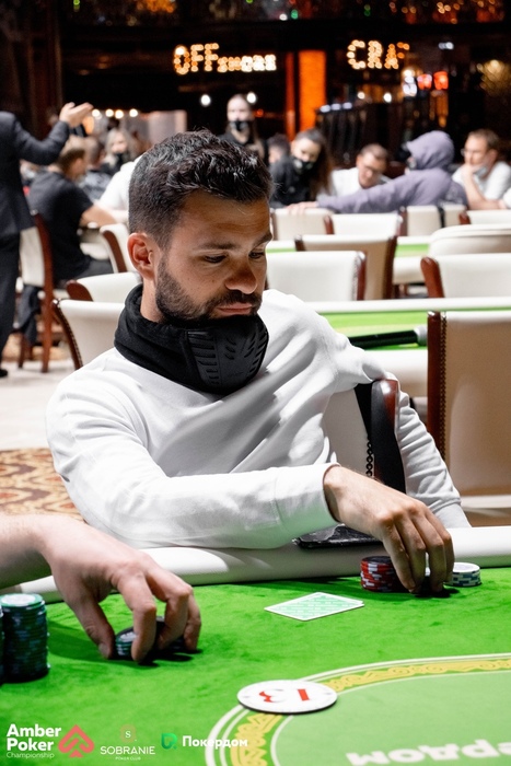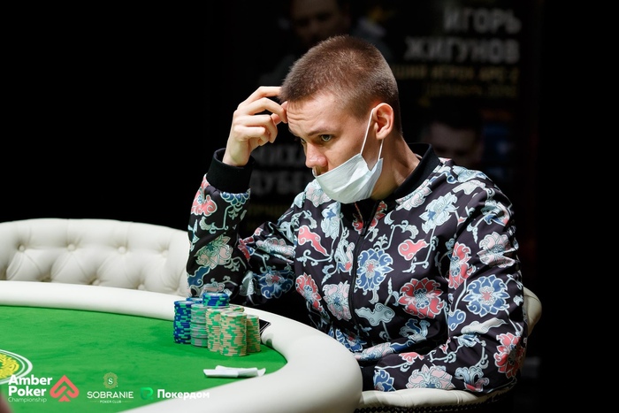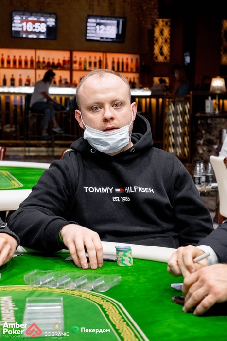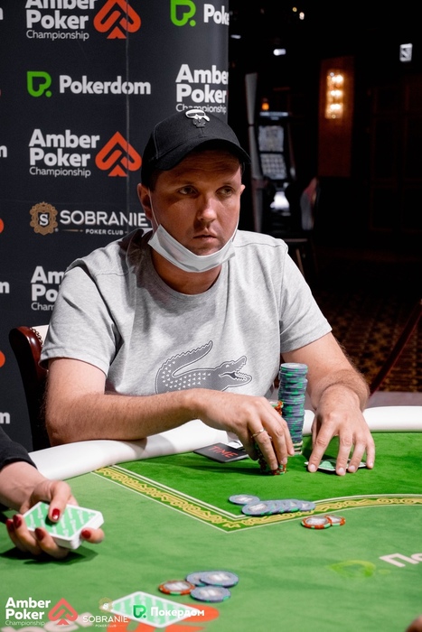 Павел Рябошапка успел перед перерывом переехать королей Олега Манылова, поймав туза на ривере к своим . Выиграй Олег - он становился бы чиплидером.