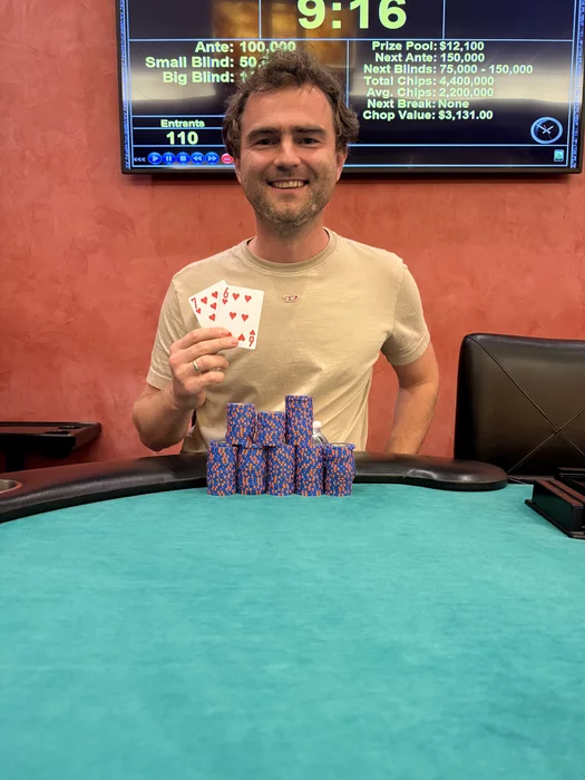 Из онлайна почти ушёл: высиживать ровно на стуле стало тяжелее, а вот в местных покер-румах Майами почему-то получается отлично 😅 Поэтому сейчас в основном оффлайн. Результаты хорошие: в первый год ROI около 90%, во второй — примерно 60%, и это без единого крупного заноса. Ещё выиграл свой первый в жизни трофей — был непередаваемо рад. Честно, иногда мне казалось, что я даже охочусь за ним в ущерб EV и доходу. Но теперь, слава богу, гештальт закрыт.