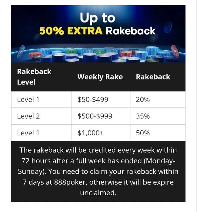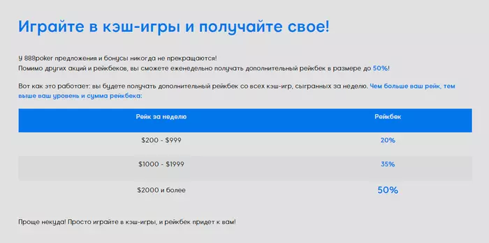 P. S а так я скидывал структуру выплат рб на 888, там в полне мидл рег может иметь хороший %, но микро лимиты увы не думаю что могут претендовать вообще на рб. При 200$ мин рейка в неделю.