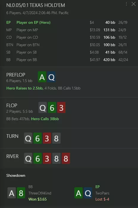 dibidibidis, lol! Я и так прекрасно знаю, что не будет 20бб/100, в 40бб стеке, это физически невозможно, тем более в зум. Достаточно будет пару десятков раз посмотреть на каре с тузами или фуллом.