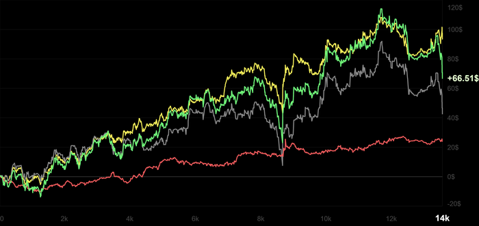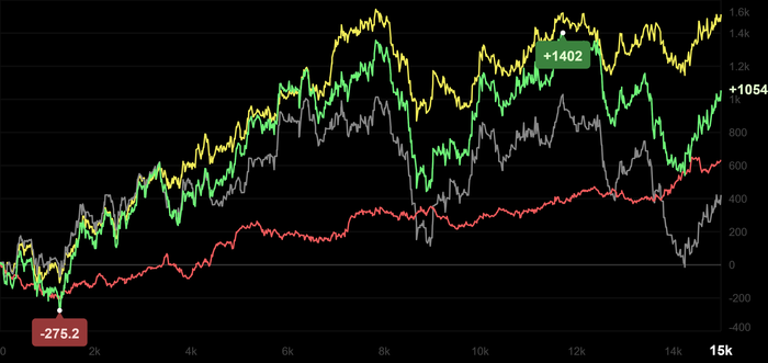 Вот сегодня я в 3бет поте выставился с ТП+OSD+FD против голой овер пары, ты думаешь мне из 16 аутов что-то закрылось, нет конечно же! Вот об этом речь. Когда я позади, это 100% луз, когда у людей 3 аута, они блядь обязательно закроются. А график к ктому что кому-то поверх ЕВшки зелёная улетает куда-то в ебеничкские облока, но не у меня.
