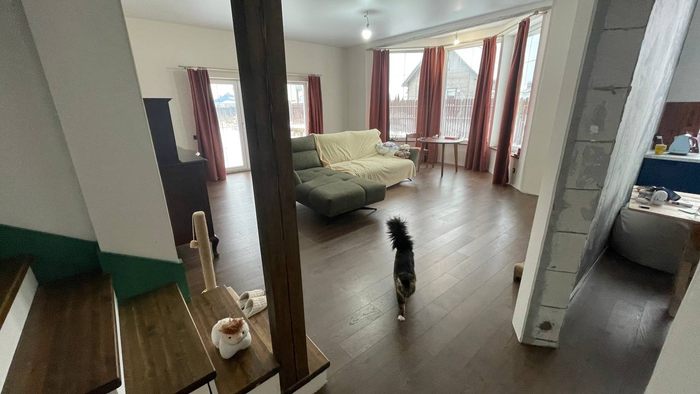 А вот внутри уже чето более менее мяском обрастает, хоть еще и пустовато в целом, не хватает мебели, большей части дверей, зелени, полочек, декора на стенах, в трети помещений еще обоев нет и потолка, не говоря уже о таких мелочах как плинтусы, тюль, шторы и т.п.