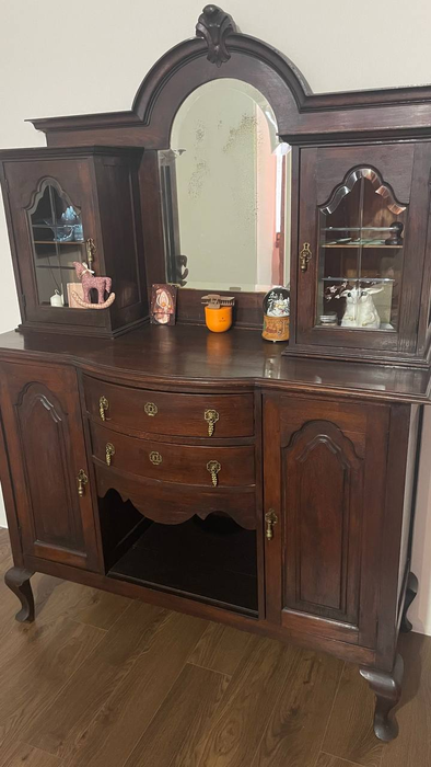 Из интересного, прикупили вот такой антикварный буфет из Германии. Приехали мне за шкафом изначально, а Ирине он приглянулся ни жить ни быть вот, пришлось еще и его оформлять )