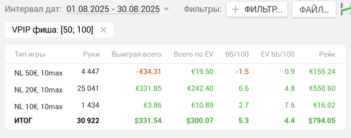 Везде добавил по паре процентов, это при том что я опять заглядывал на полтинник, где я еще часто не знал что за фиш и какой у него впип, сухой он или нет и пару раздач уходило на это, что тоже резало процент.