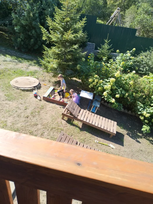 Проснулись в чудесном настроении, за окном отличная погода. Дети после завтрака побежали во двор.