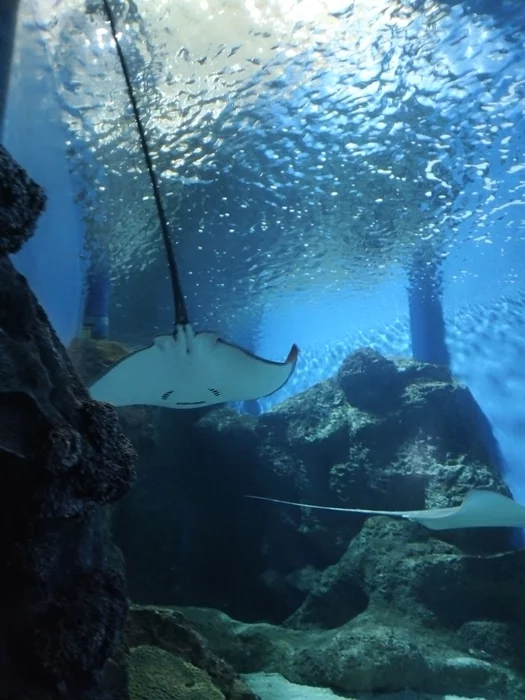 Доехали до места. Оказалось, что за шлагбаум не пускают на авто. От шлагбаума до океанариума 1 км. Можно дойти пешком или доехать на бесплатном автобусе. Мы пошли пешком. Шикарное место. Чисто, аккуратно, красиво, уютно. Купили билеты. Представление в 15-00, время 11 утра.