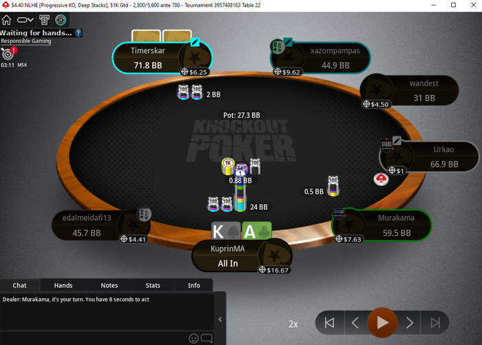 В этот раз он снова в одиночку сидел и скучал за не самым дешёвым для меня столом, где вход был 200$, но учитывая уровень оппонента, мой имеющийся уже на тот момент банкролл и то, что мне просто нужно было добить сундук, я решил подсесть и поиграть. Ну а дальше всё пошло по покерной классике: один жёсткий переезд, второй, третий... Я все улицы старше, но ему постоянно доезжает последним обменом. И вот уже пришла она - замазка. В итоге за час я умудрился проиграть почти половину банкролла и создать себе кучу финансовых проблем.