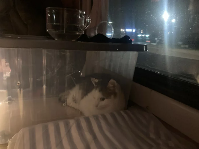 С тех пор прошло уже почти 5 месяцев. Яша первые пару дней пожил возле подъезда. Я очень рад, что он прижился и не убежал. Через 2 дня Маша забрала его к себе в квартиру (позже она заберёт ещё двух маленьких девочек), а совсем недавно перед самым НГ, после смерти моей кошки Машки, которой было больше 20-ти лет, мы с Машей приняли решение отдать Яшу моим родителям в Брянске, где он сейчас и живёт. Ехал я с ним на поезде. Об этом писал отдельный пост. Первый день в новой квартире, среди новых людей он был очень сильно напуган, но постепенно, увидев то, как к нему относятся, он стал совершенно другим. Очень активным и любящим ласку. Уже сам приходит и ложится рядом с нами. Любит когда его гладят и постоянно мурчит. В этом смысле он полная противоположность нашей Маси, которая ведёт себя как недотрога. И все, кто видят Яшу, говорят, что он очень красивый. Ниже пять фото с того момента, когда он пару дней жил на улице возле подъезда.