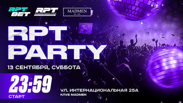 Настал час для очередного отрыва. Уже этой ночью развлекательную программу сентябрьской серии продолжит RPT PARTY — наша фирменная тусовка для всех гостей и участников серии 🥂