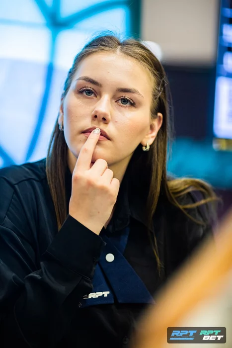 На флопе Алина поставил 10к и осталась с Евгением одни на один с , но оказалась младше .