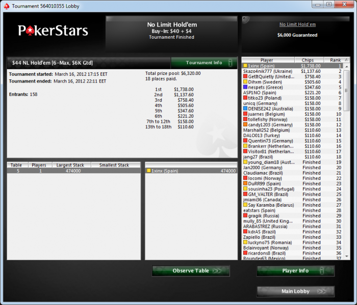Сразу сел в позднюю регистрацию в баунти 700+300. 1я рука ДД, 3бетнул Макса БиХэппи, показал. Следующая рука АК, рейз, я 3бет, там пас, показываю. НО! Оказывается был еще кол от иностранца. Он начал говорить, что мою рука мертвая. Позвали менеджера: он сказал, что моя рука не мертвая, играю в открытую. Флоп 8Т2, он поставил ) пришлось выкинуть. Показал QJ.